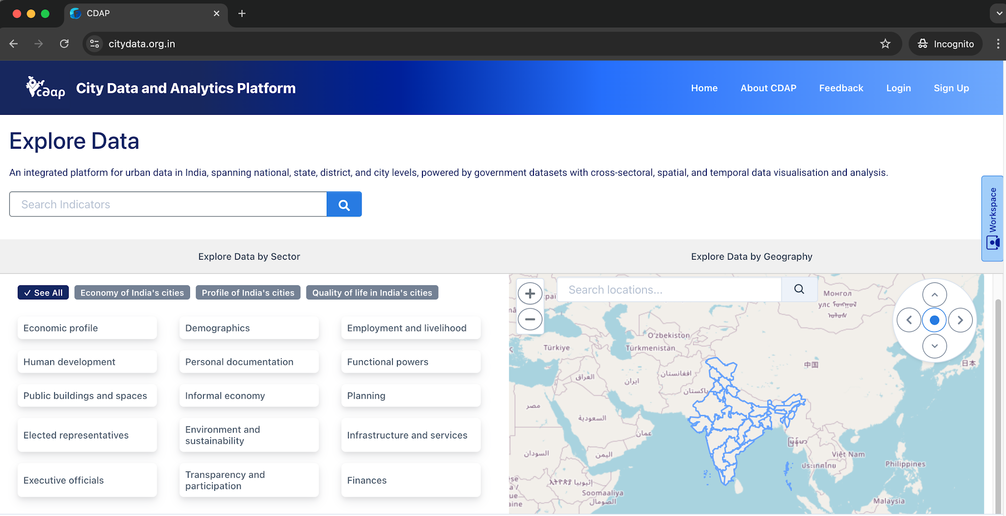 CDAP is a microsite of NITI Aayog’s National Data & Analytics Platform (NDAP), conceived, created, and operated by Janaagraha.. Socialbytes partnered as the technology enabler, supporting the design and development of a scalable, analytics-ready urban data platform.